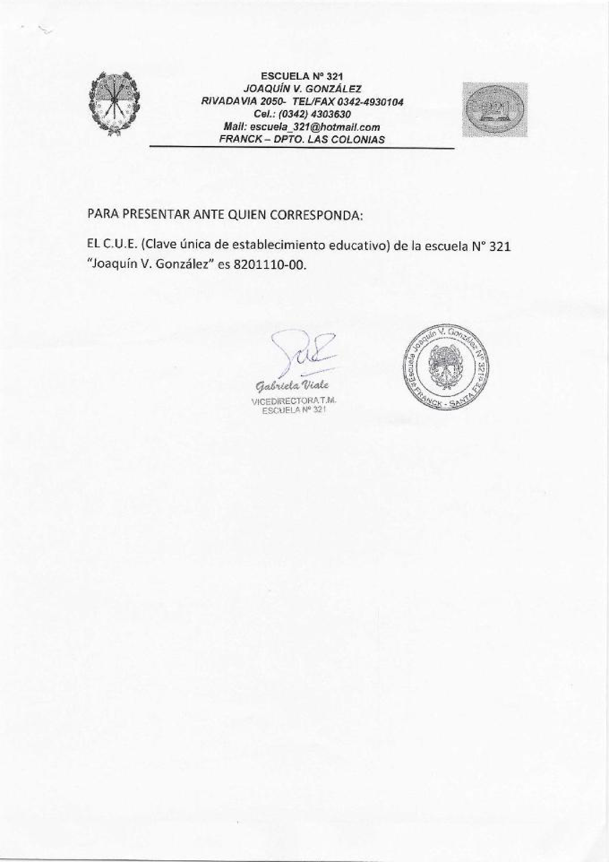 | 118 | CUE (CLAVE ÚNICA DEL ESTABLECIMIENTO) | 31/12/2025 | Modificar Eliminar | |