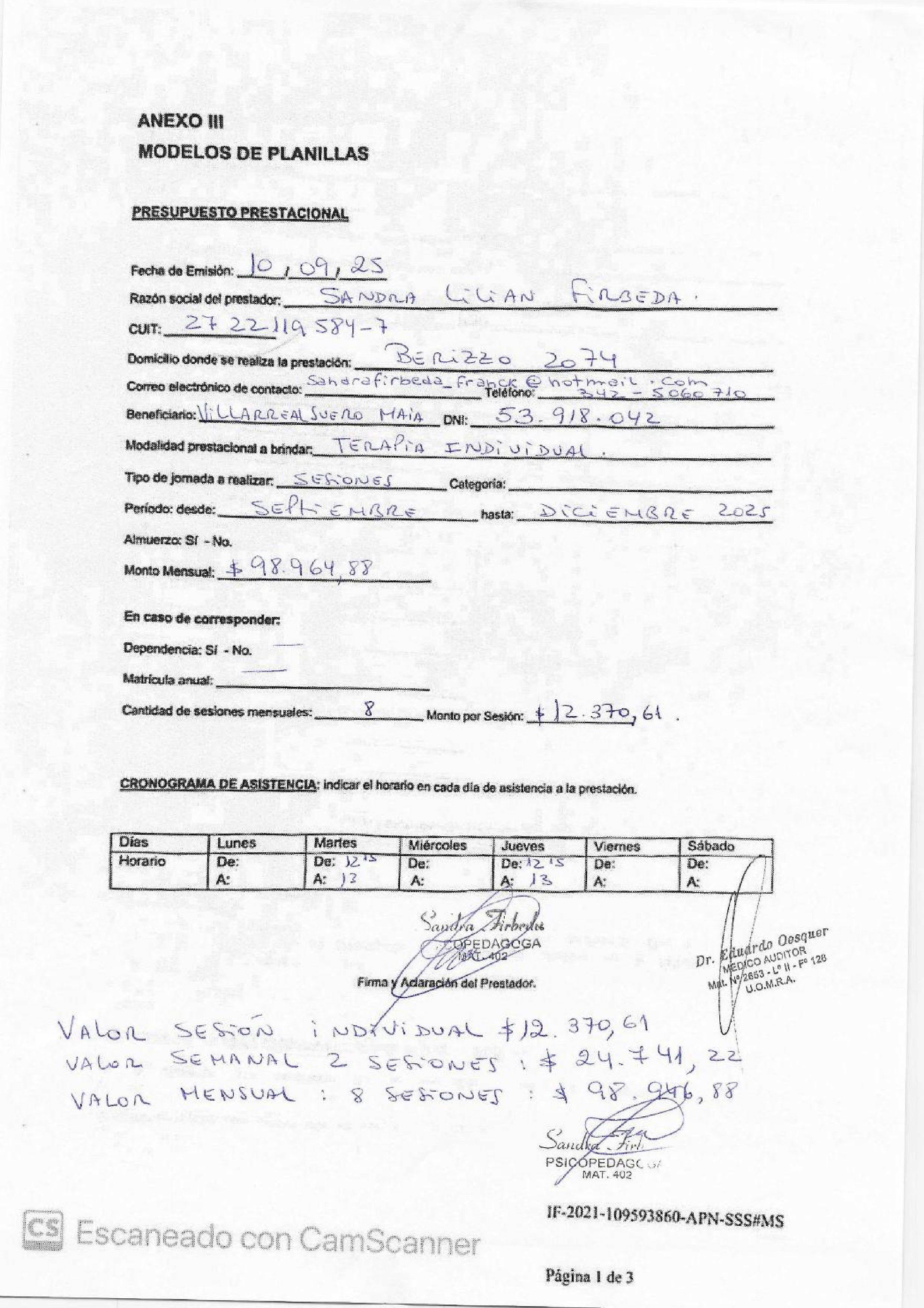 | 89 | FIRBEDA SANDRA | PRESUPUESTO |