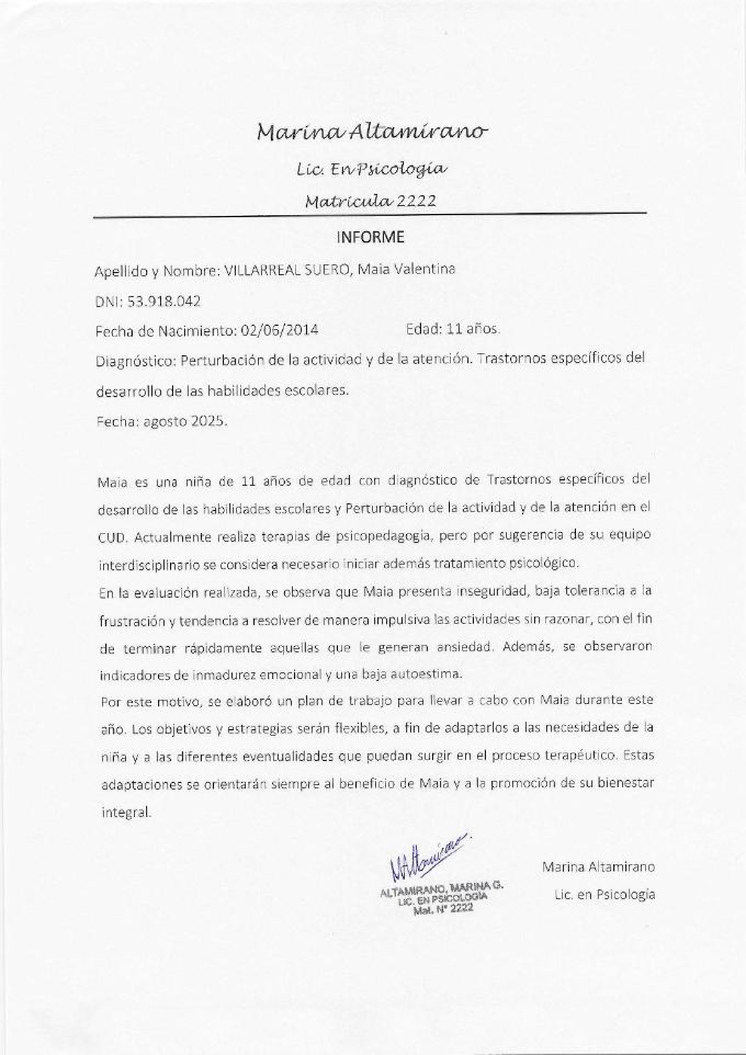 | 85 | ALTAMIRANO MARINA | INFORME INICIAL |