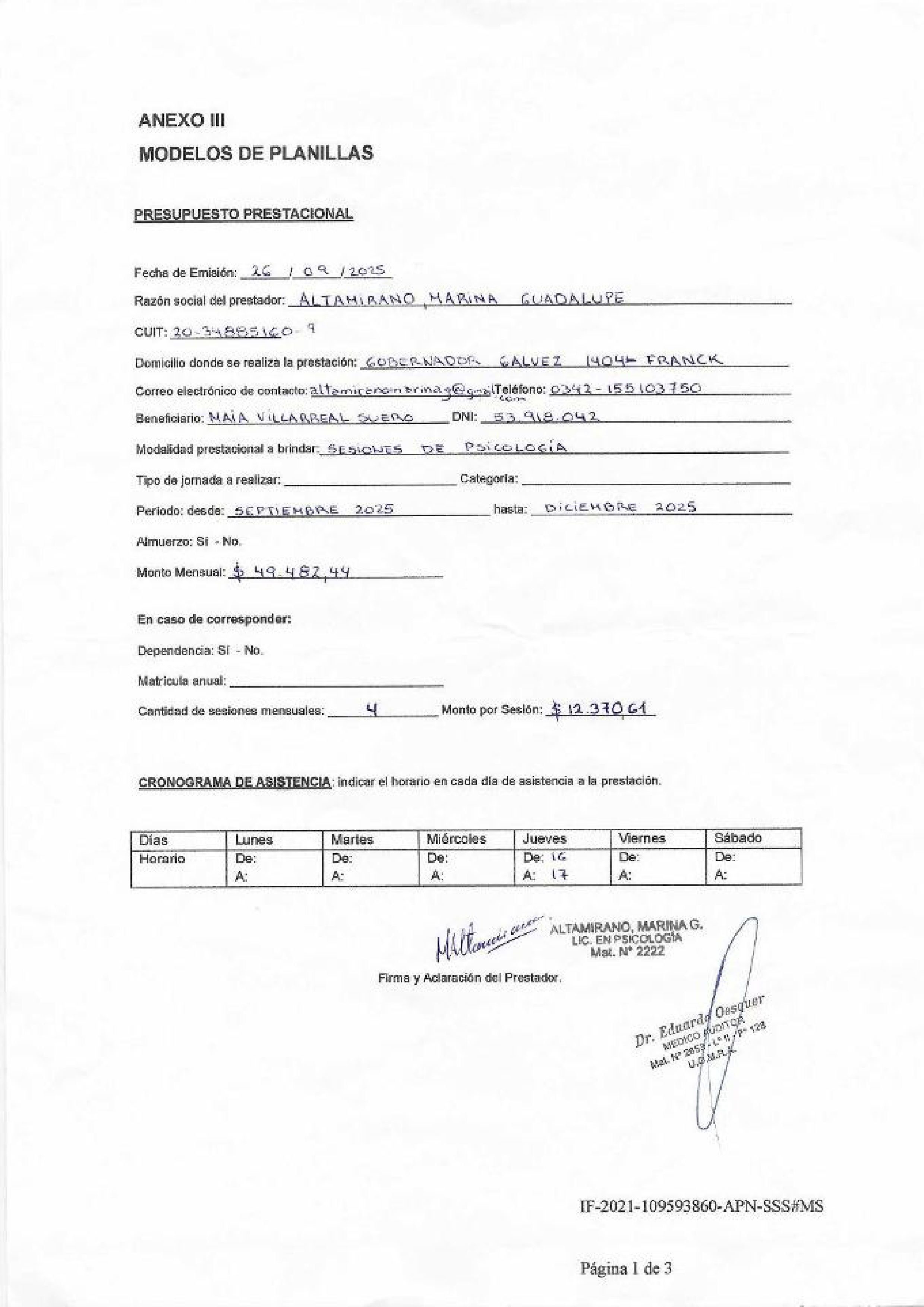 | 649 | ALTAMIRANO MARINA | PRESUPUESTO | 12/31/2026 12:00:00 AM | Modificar Eliminar | |