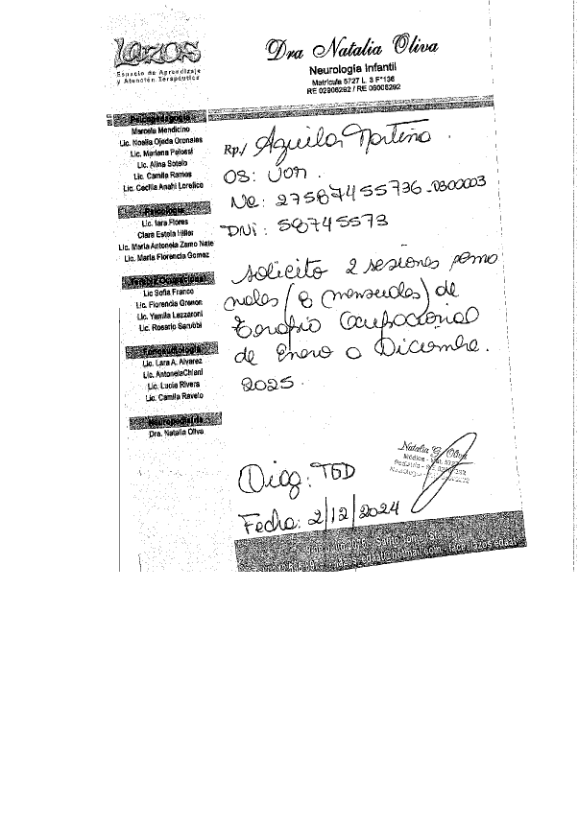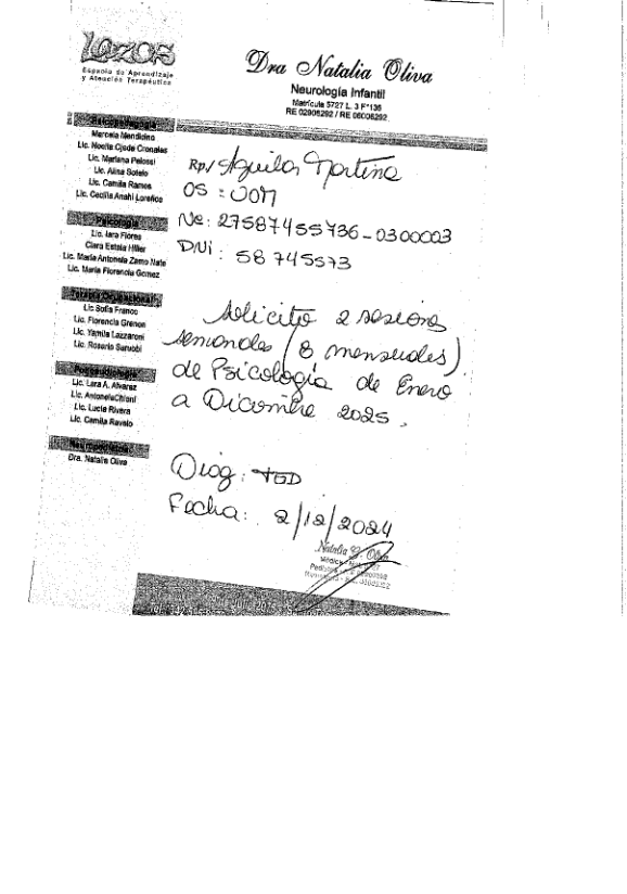 | 22 | CERUTTI LORENA | PEDIDO MEDICO DE CADA PRESTACIÓN |