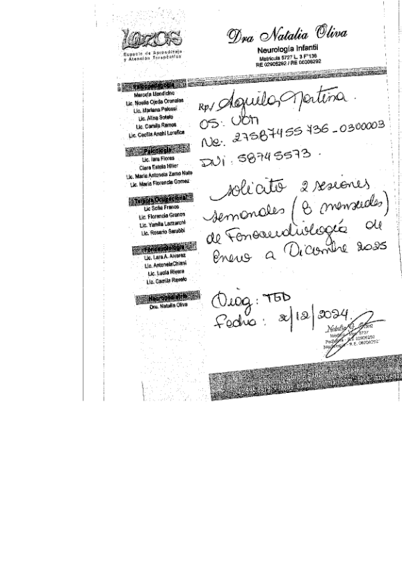 | 27 | ALTAMIRANO MARINA | PEDIDO MEDICO DE CADA PRESTACIÓN |
