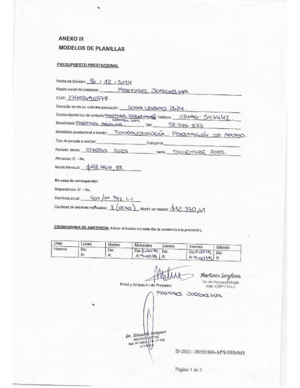 | 32 | MARTINEZ JORGELINA | PEDIDO MEDICO DE CADA PRESTACIÓN |