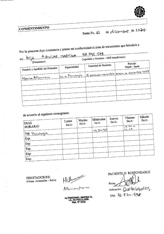 | 25 | ALTAMIRANO MARINA | CONSENTIMIENTO PRESTACIONAL |