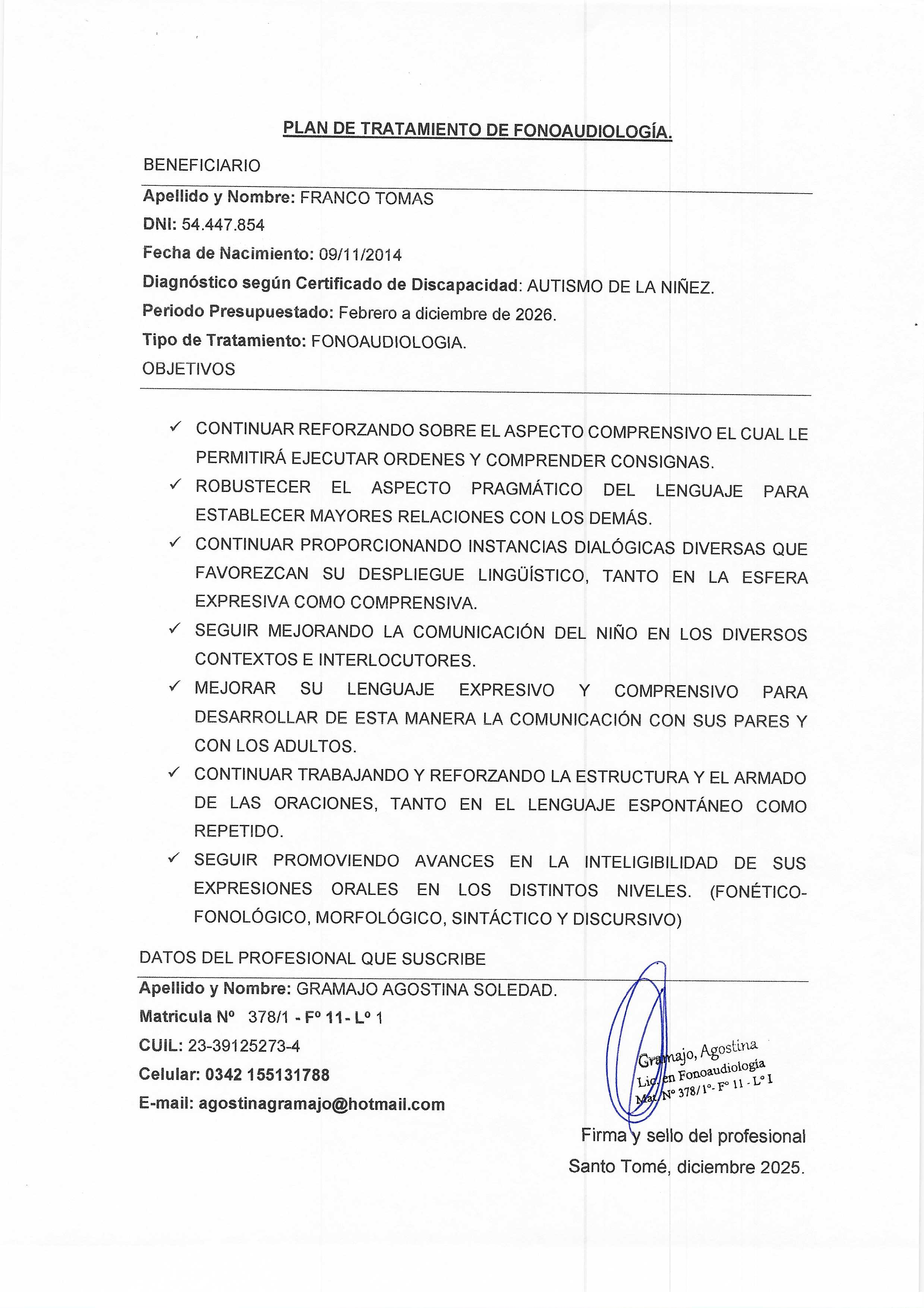 | 264 | GRAMAJO AGOSTINA | PLAN DE TRATAMIENTO |
