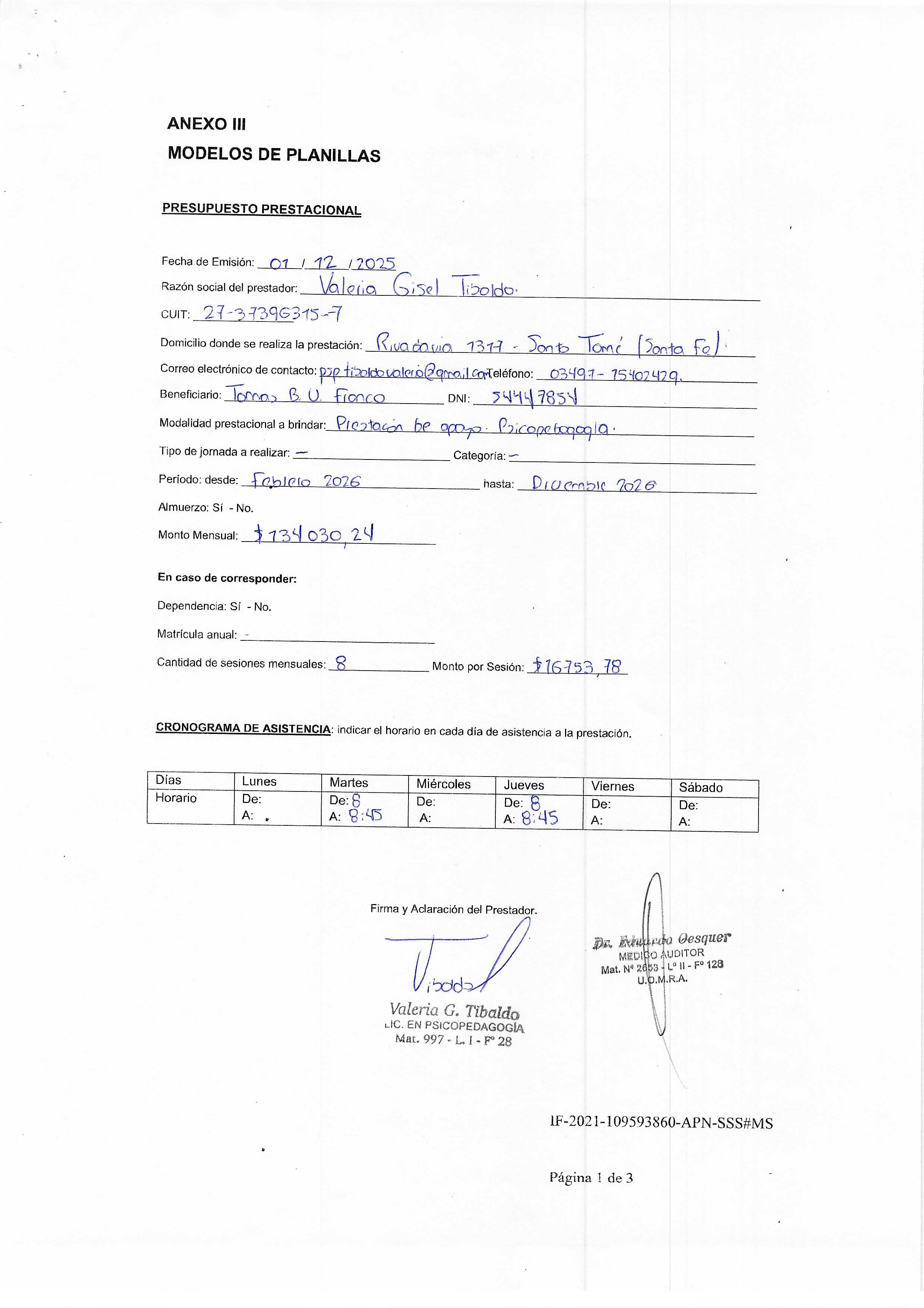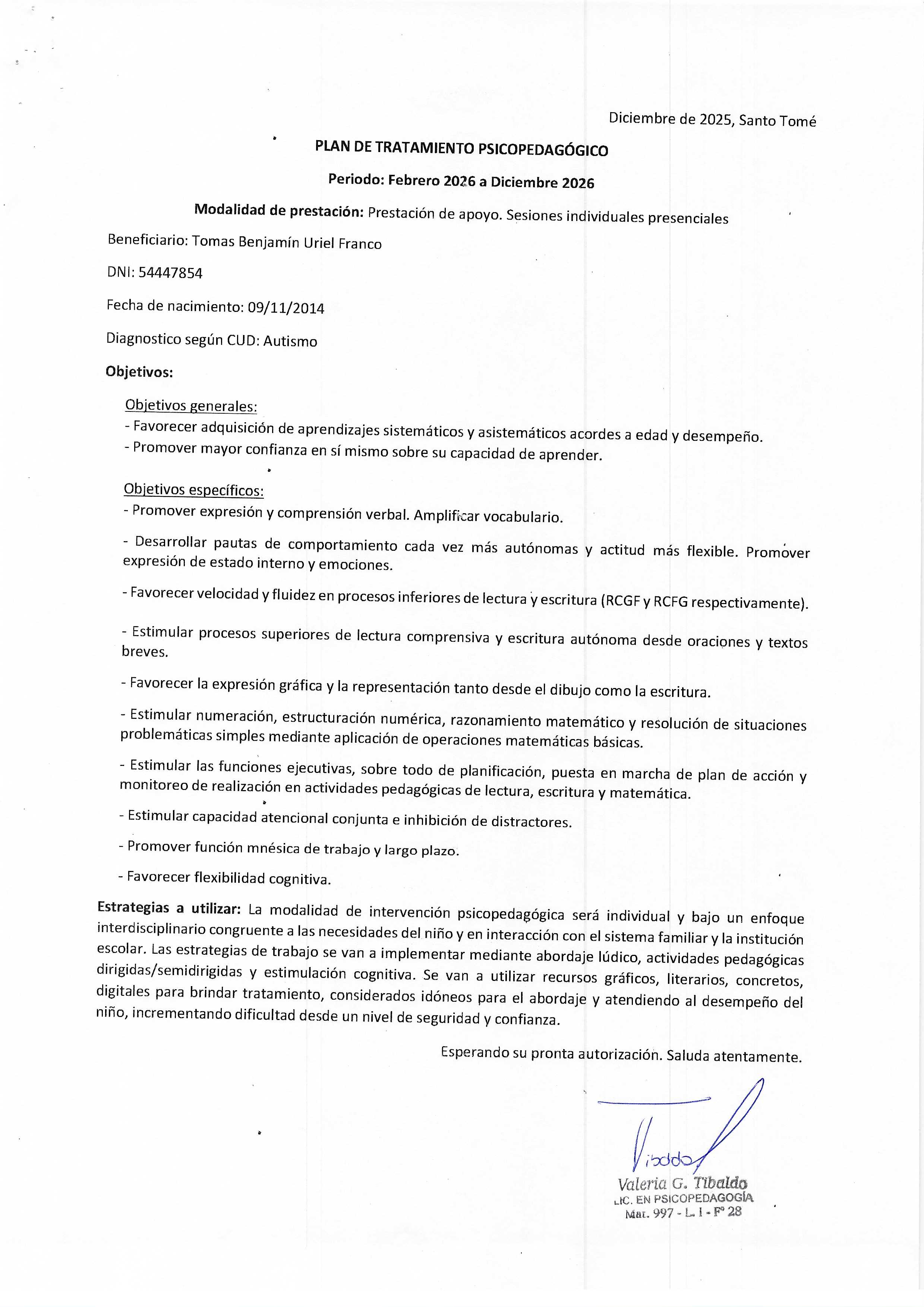 | 258 | TIBALDO VALERIA | PLAN DE TRATAMIENTO |