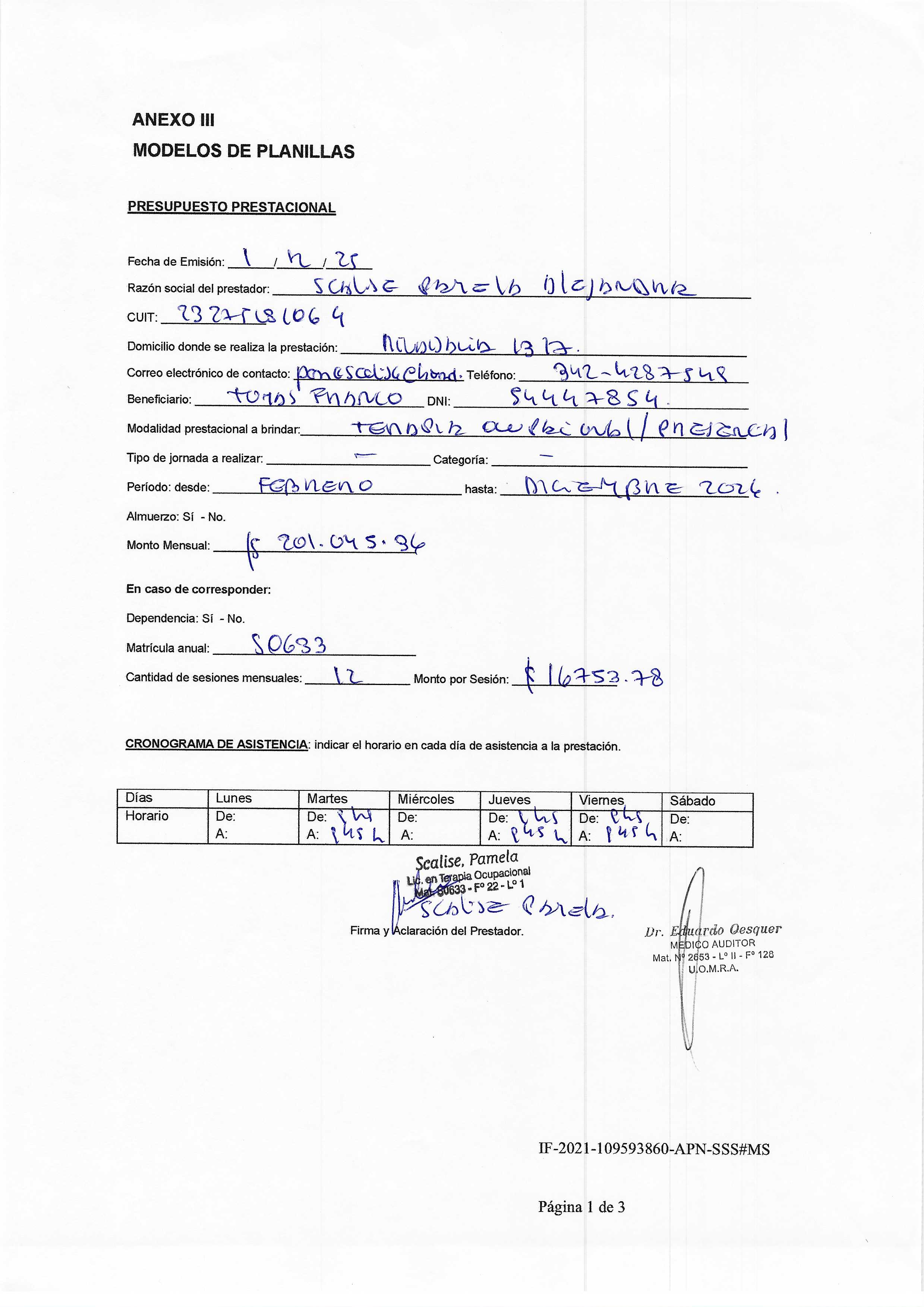 | 260 | SCALICE PAMELA | PRESUPUESTO |