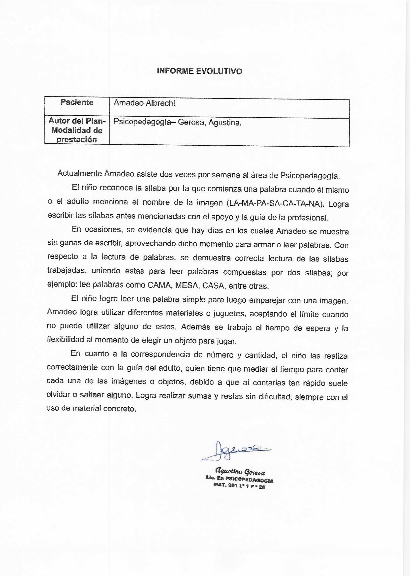 | 56 | GEROSA AGUSTINA | INFORME INICIAL |