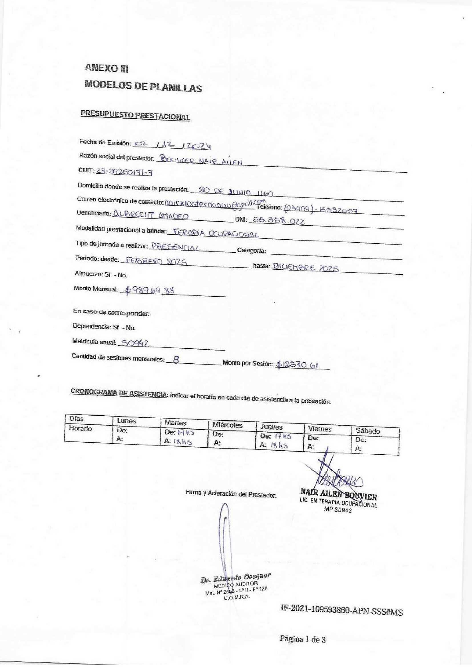 | 335 | BOUVIER NAIR | PRESUPUESTO | 12/31/2026 12:00:00 AM | Modificar Eliminar | |