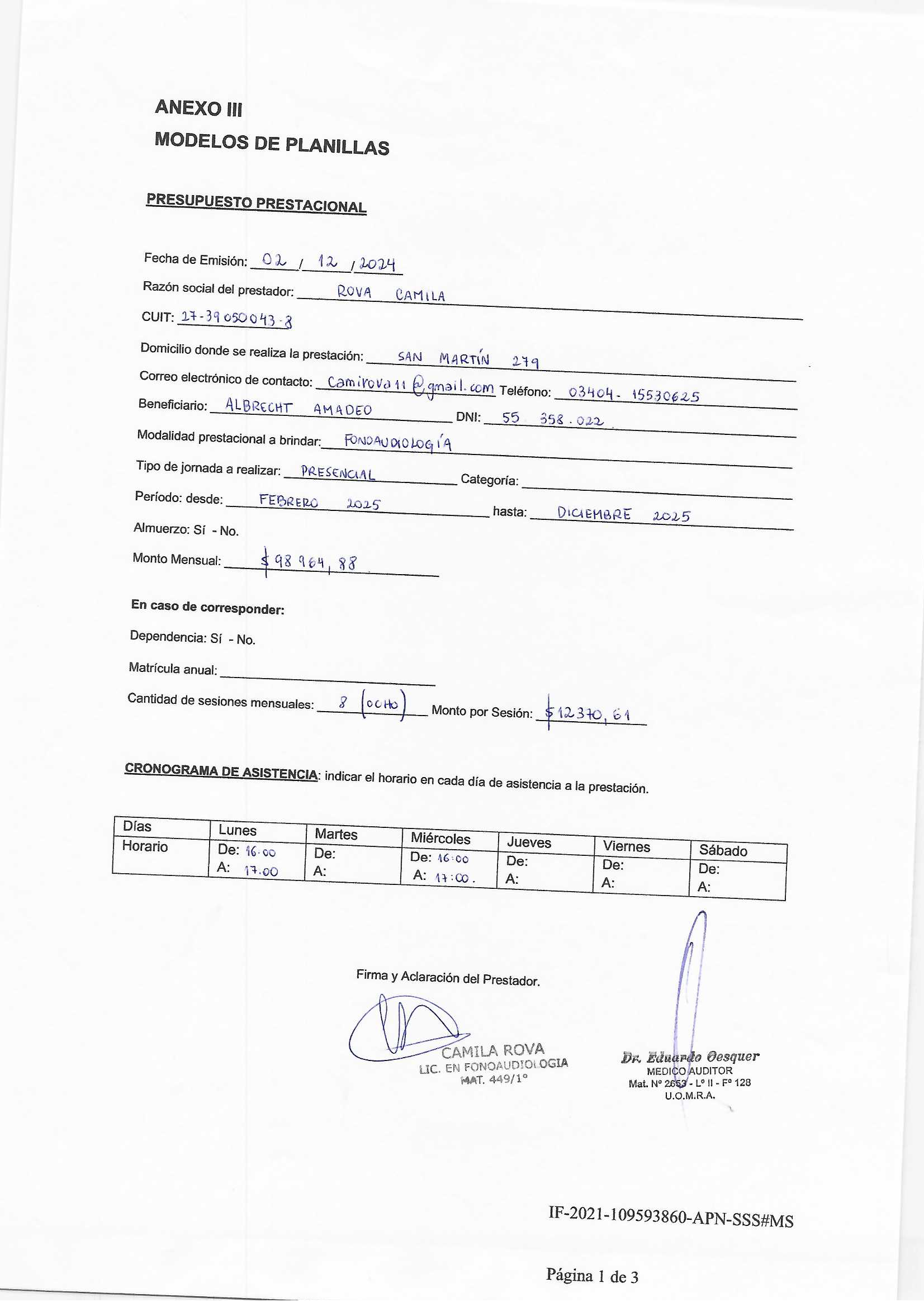 | 54 | ROVA CAMILA | PRESUPUESTO |